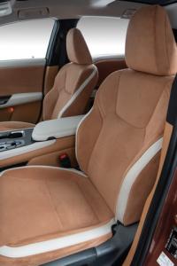 Nas laterais, os vincos se estendem até a traseira, onde o teto de caimento suave – ao estilo SUV cupê – destaca a grande lanterna horizontal com emblema integrado da Lexus. Também chamam a atenção as rodas de liga leve de 20 polegadas, que, para o mercado brasileiro, terão acabamento diamantado, o que adiciona ainda mais refinamento e exclusividade.